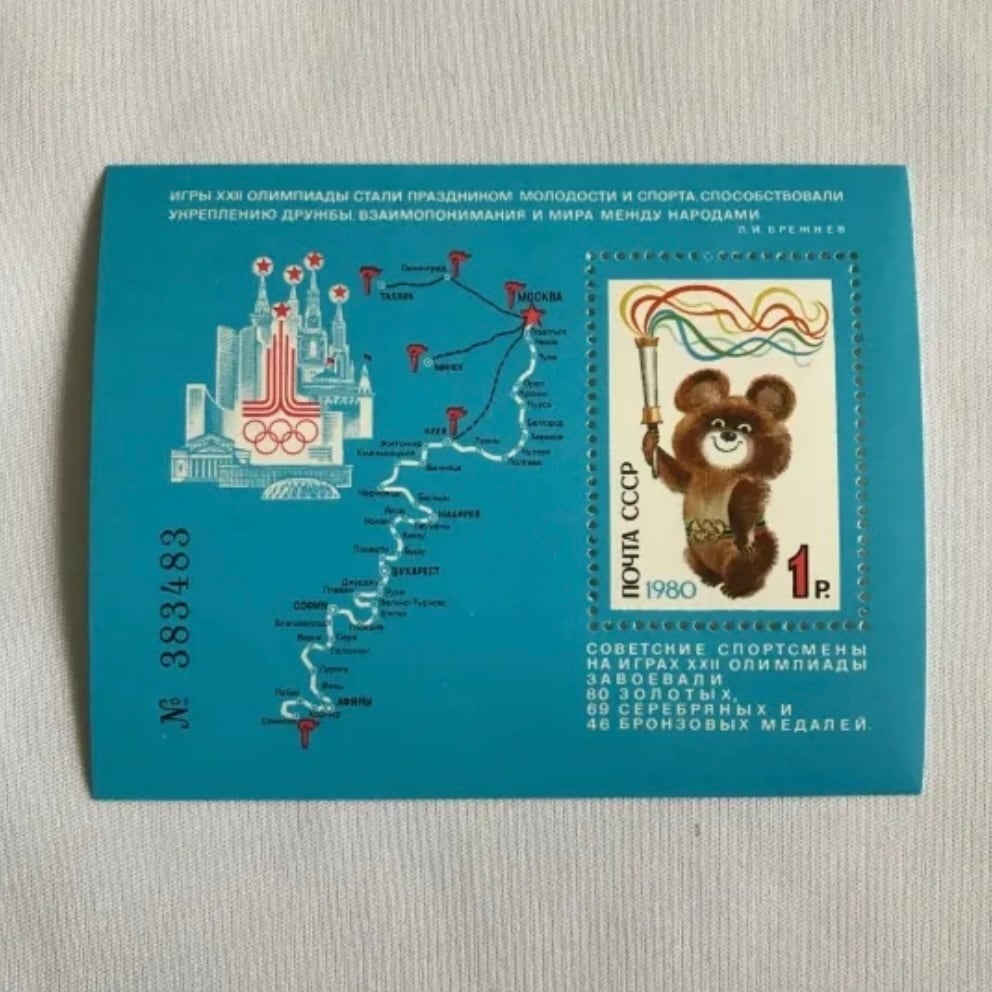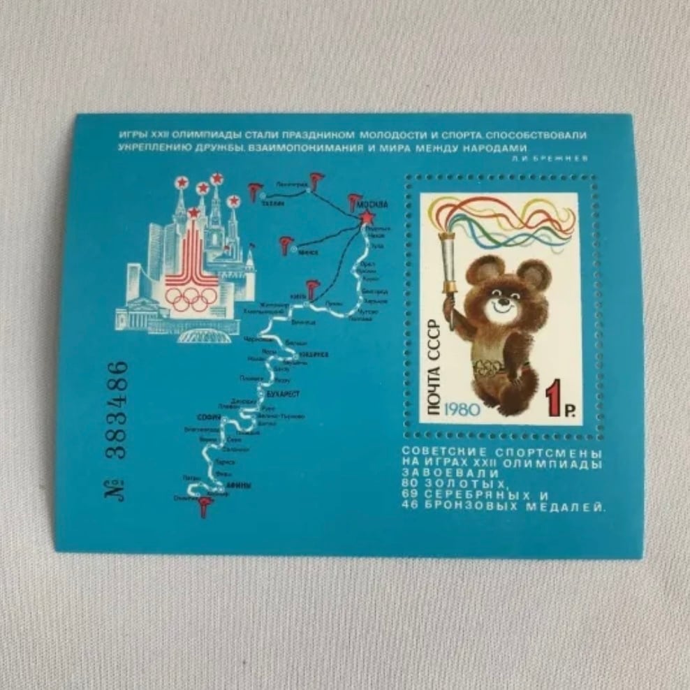1980年モスクワオリンピックのキャラクター「ミーシャ」の切手シート